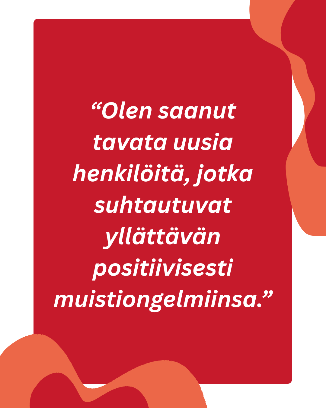 Olen saanut tavata uusia henkilöitä, jotka suhtautuvat yllättävän positiivisesti muistiongelmiinsa.