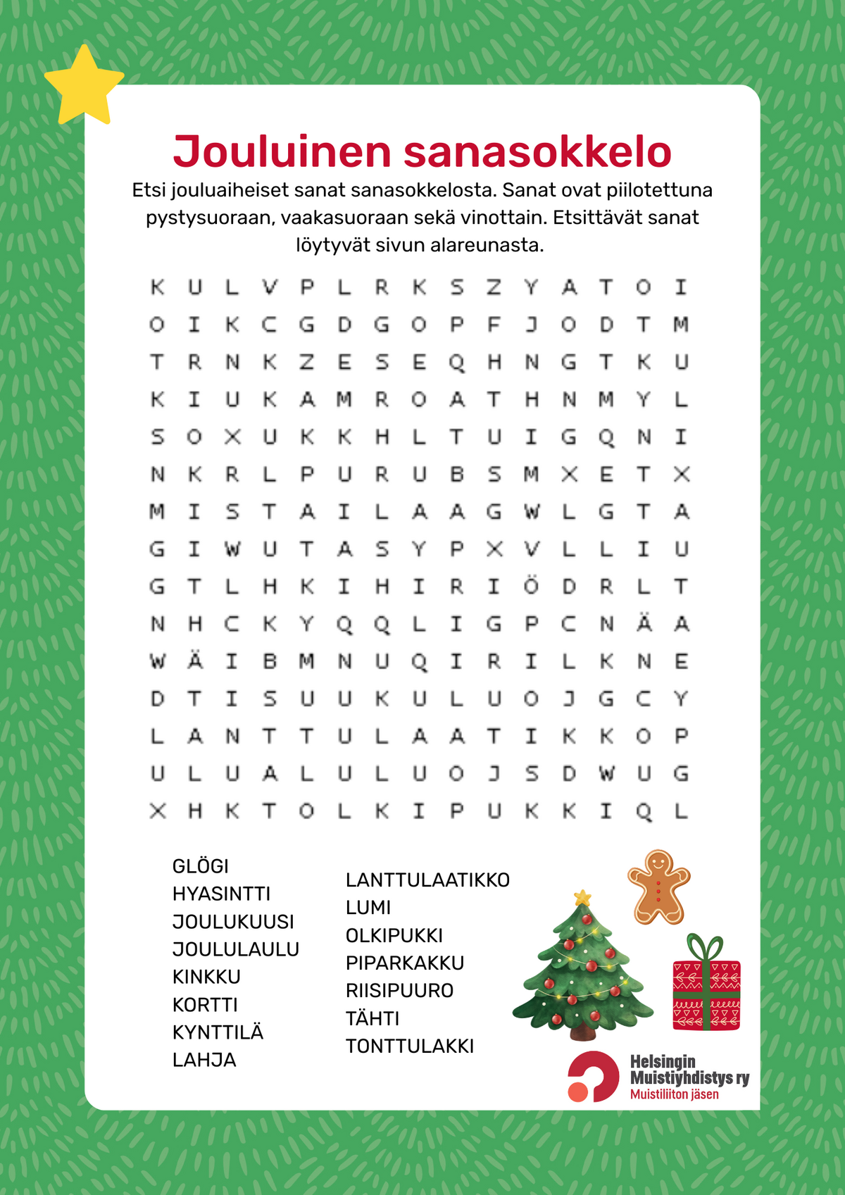 Luo joulutunnelmaa ilmaisella jouluaiheisella sanasokkelolla.